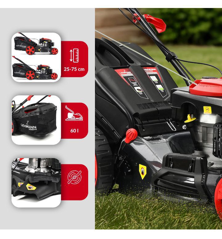 ✅ Centralna regulacja wysokości cięcia: 25–75 mm (7 poziomów)