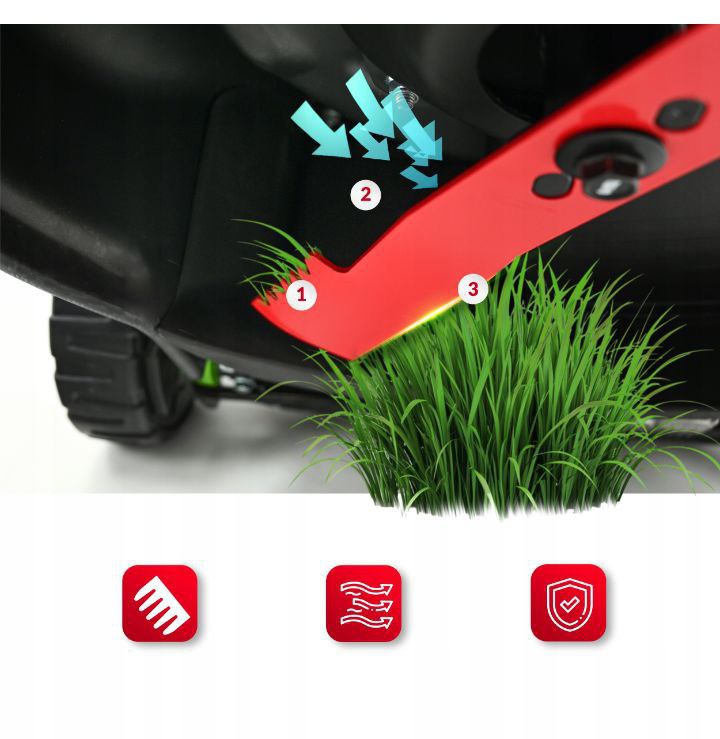 - ✅ rozdrabnia trawę na mniejsze fragmenty,