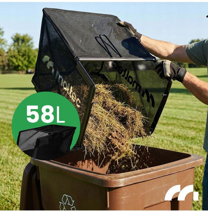 1. Z koszem – by zachować nieskazitelną czystość wszystkie pozostałości trawy będą lądowały w bardzo pojemnym koszu, który w każdej chwili można opróżnić by kontynuować pracę.